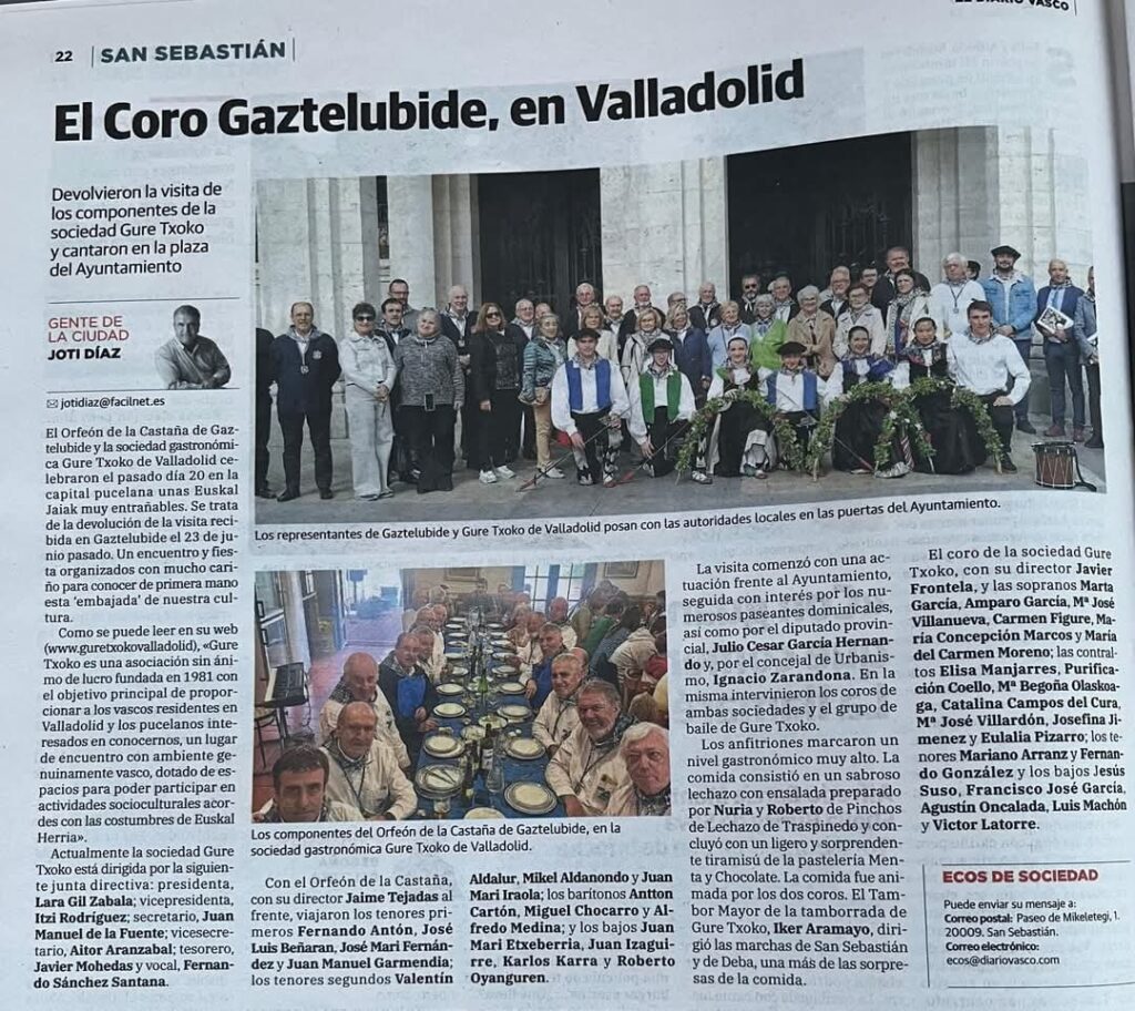 La Euskal Jaiakk de 2024 fue todo un éxito se celebró el 20 de octubre de 2024..Y vinieron nuestros amigos del orfeón de la Castaña de San Sebastián y un grupo de dantzaris de San Sebastián también..
